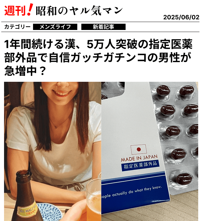 50過ぎてから急にガクッときたのですが、コレのおかげで愛犬にも負けないぐらいにはイキイキしてる気がします。心なしか、妻と二人で外出することも増えて少し青春時代を思い出してます。